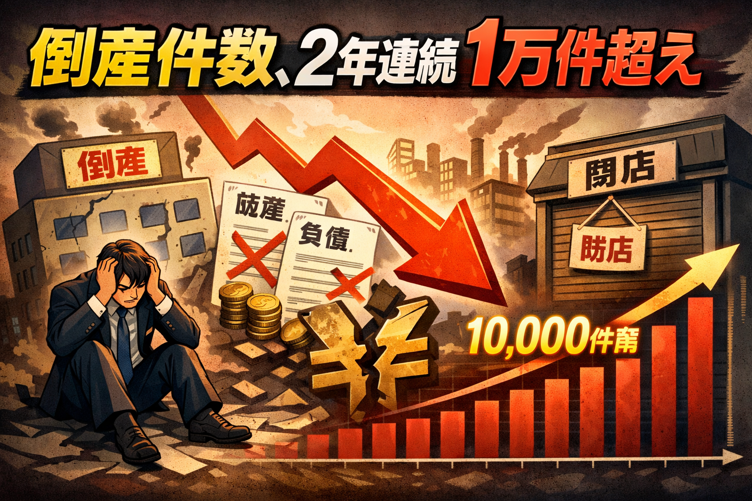 「倒産件数、2年連続1万件超えるも…」